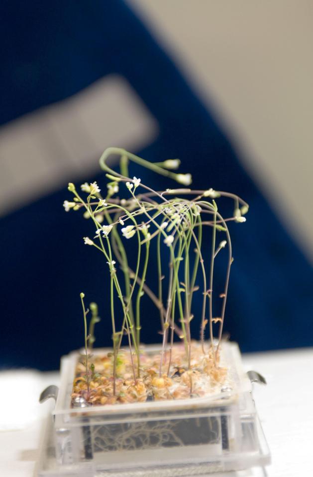 La première plante à fleurir dans l’espace sera Arabidopsis thaliana en 1982, le modèle par excellence de la biologie végétale, à bord de la station soviétique Salyut-7. L’étude prouva que la plante se développait et formait des graines, viables bien que leur morphologie soit légèrement altérée.
