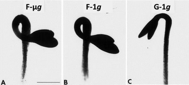 Figure C : le contrôle au sol, ayant une croissance normale. Dans ce cas, la courbure n’est donc pas liée à l’absence de gravité, mais bien à d’autres facteurs liés au vol spatial !