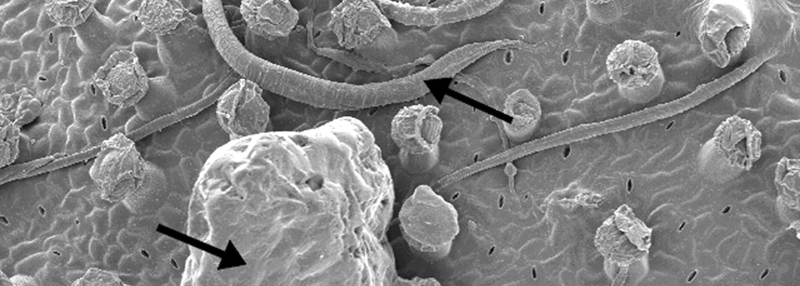 Pour en avoir le coeur net, les auteurs de l’article ont pris des clichés de microscopie électronique à balayage pour mettre en évidence la présence de nématodes collés sur les feuilles :