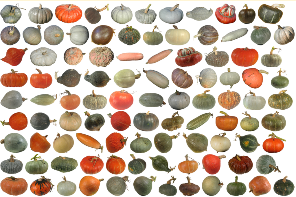 En ce qui concerne le potiron, il est lui dérivé de l’espèce « Cucurbita maxima » originaire du sud de d’Amérique du Sud, et dont la diversité n’est pas moins stupéfiante :
