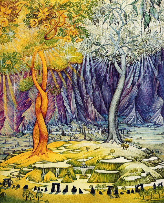 Si vous êtes un vrai fan du Seigneur des anneaux, vous connaissez probablement le nom de ces deux arbres mythiques : Laurelin et Telperion. Créés par le chant de Yavanna, l’une des reines des Valars, amoureuse de toutes les choses qui croissent, ils irradient d’une douce lumière qui éclaire le monde au commencement du temps.