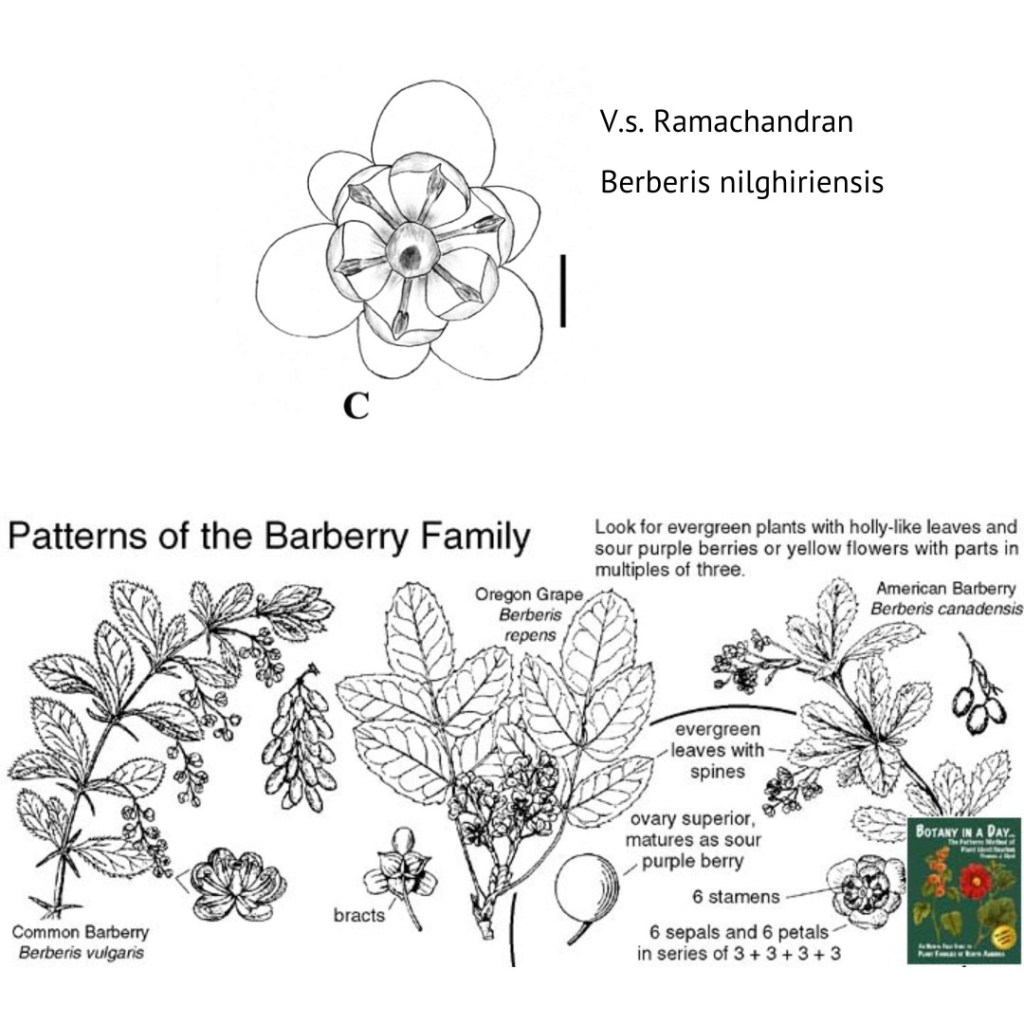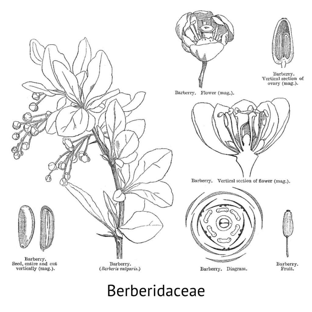 Comme la forme des fleurs est souvent similaire dans une même famille de plantes, on peut vérifier si celle-ci comme pour notre Diphylleia grayi. Une courte recherche m’indique que notre « fleur squelette » est de la famille des Berberidaceae. La fleur typique de cette famille, d’après mes livres de botanique, devrait avoir environ 6 pétales, par multiples de 3, 6 étamines et un carpelle, en bref.