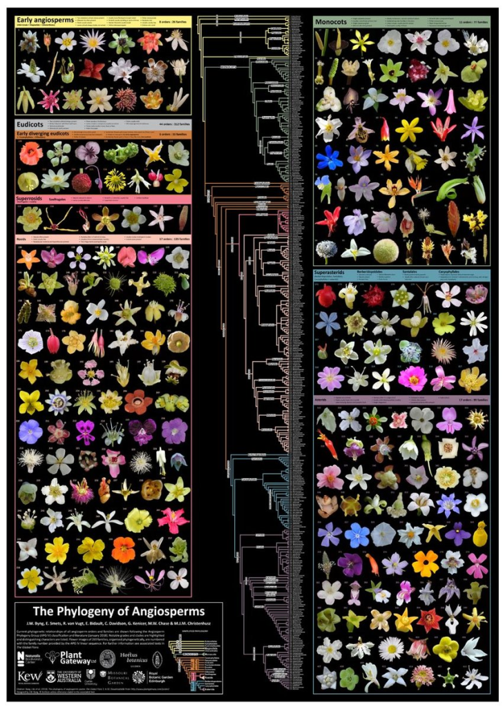 Vous pouvez l’observer par exemple sur la forme des fleurs, qui est souvent conservée dans la famille, comme on le voit très bien sur ce poster de la classification des plantes à fleurs (Angiospermes), téléchargeable gratuitement ici.