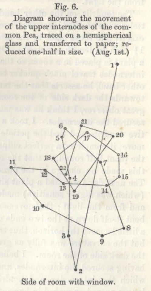 Et l’un des pionniers de la décomposition du mouvement des plantes n’est autre qu’un certain Charles Darwin, accompagné par son fils Francis. Dans leur 1er livre en 1865, intitulé “Sur le mouvement et les habitudes des plantes grimpantes” (2), et un autre plus tard en 1880 “Le pouvoir du mouvement dans les plantes” (3), ils utilisent une méthode décrite très précisément pour suivre le mouvement des végétaux.