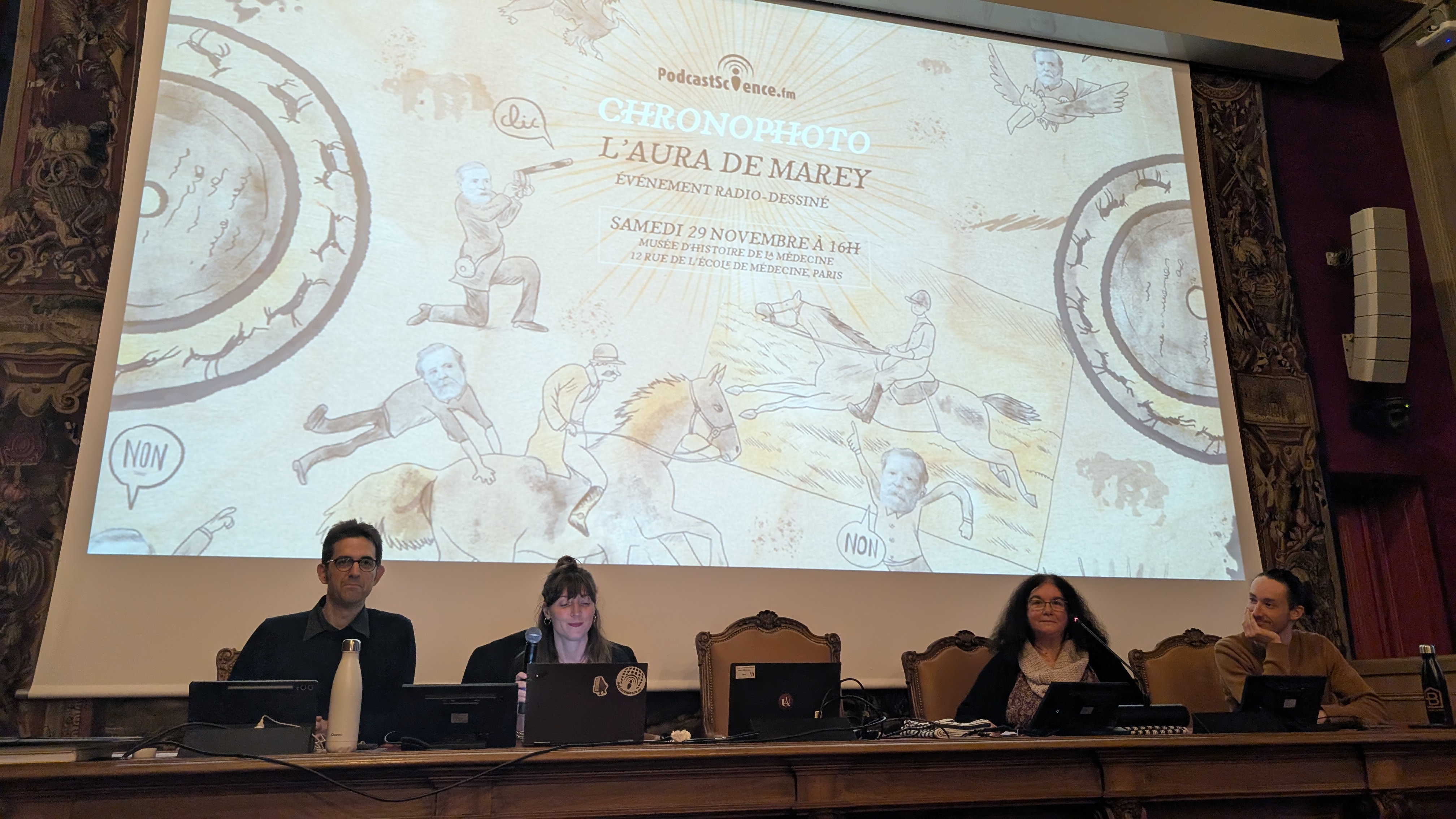 Avant l’émission ci-dessus, que je vous recommande vivement, toute l’équipe de Podcast science a eu une visite du musée de la médecine de l’Université Paris-Saclay, et de l’exposition sur Etienne-Jules Marey. Pour celles et ceux qui ne le connaissent pas, il s’agit ni plus ni moins de l’inventeur de la chronophotographie, une technique qui permettra de décomposer les mouvements lents comme les mouvements rapides et qui est littéralement considérée comme les prémices du cinéma. Pas mal pour un scientifique, Hollywood n’a qu’à bien se tenir !